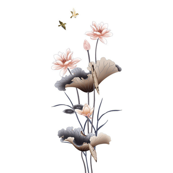 GS9580 Chinese style lotus living room wallpaper self-adhesive sofa background wall decoration wall sticker sticker wall wallpaper