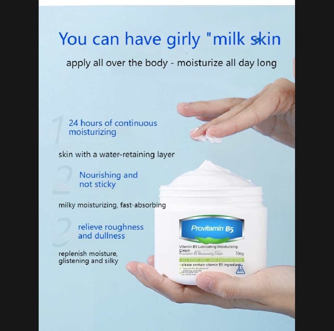 Take an appropriate amount of provitamin B5 lubricating moisturizing cream in the palm of your hand.