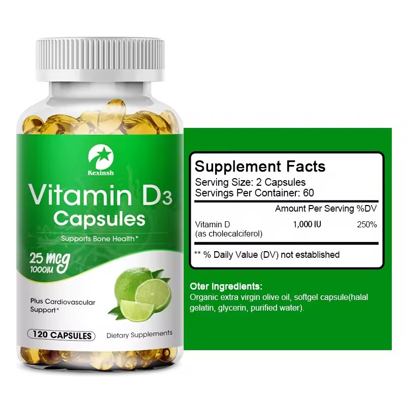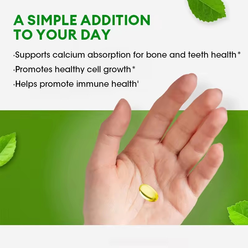 Ingredients: Vitamin D, MCT Oil(Medium Chain Triglycerides form coconut), Effect: Bone Health, Healthy Teeth, Immune Support, Cardiovascular Health, Muscle Health, Calcium Absorption Features: 1. 100% brand new and high quality. 2. Vitamin D is essential for the normal functioning of many important systems in the body and is needed for a healthy immune system. 3. Vitamin D may help support bone health as part of a healthy diet rich in calcium and other minerals. 4. Adequate levels of vitamin D can support a positive mood. How to use: Take 3-5 capsules once a day! Caution: Store bottle upright at room temperature. Keep out of the reach of children. Do not use if security seal is broken or missing.