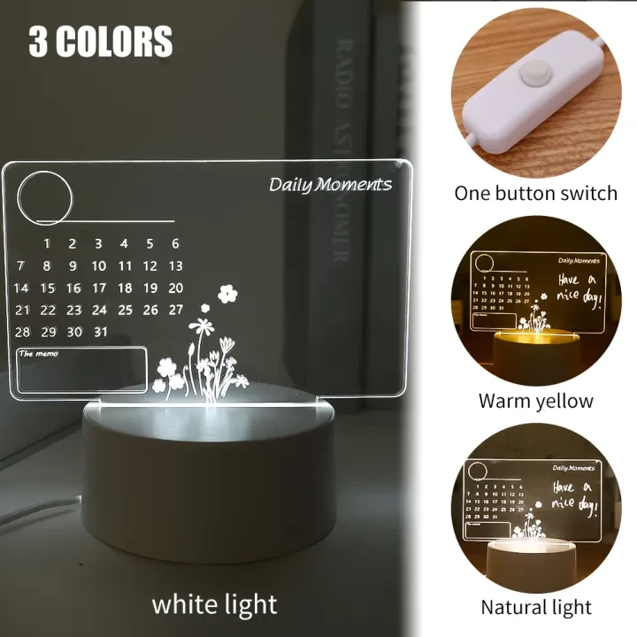 Transparent light-up calendar message board, indoor LED night light