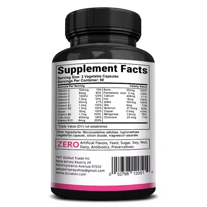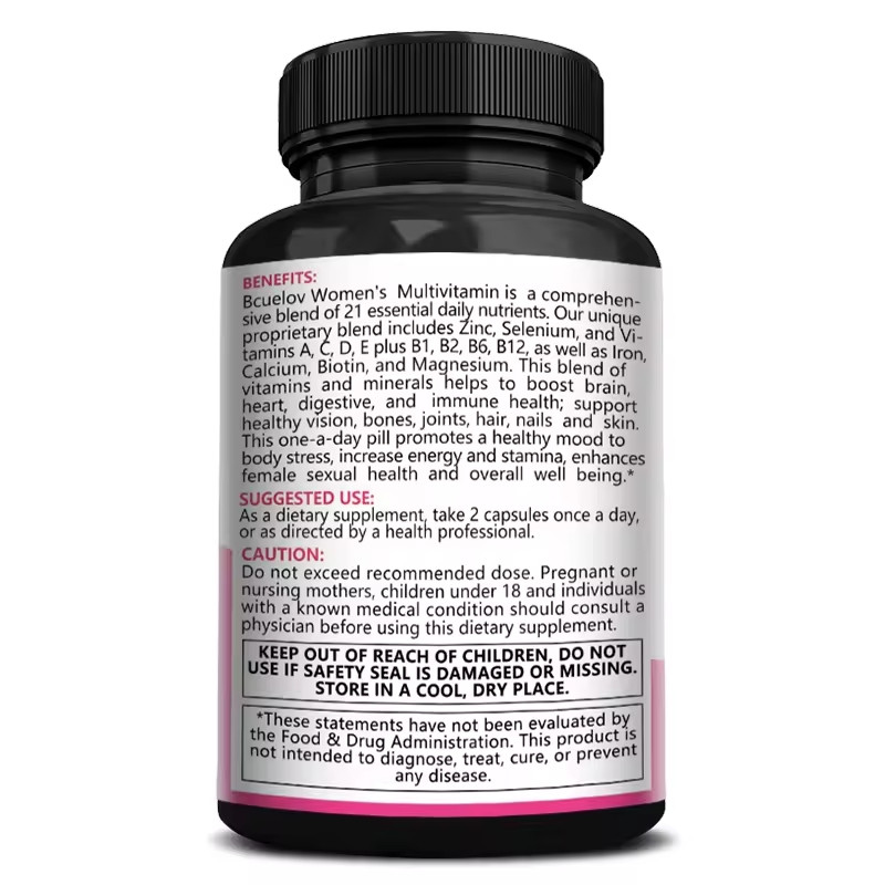 Shelf life: 2 yearsSpecifications: 30 capsulesbenefit:Helps promote brain, heart, digestive and immune system health; supports healthy vision, bones, joints, hair, nails and skinPromotes overall women's health: Drowsy? Zero power? Poor health? This dietary supplement contains an advanced multivitamin complex that helps increase energy and endurance levels, strengthen the nervous and immune systems, improve vision, enhance antioxidant capacity, and enhance women's overall health and well-being. Our blends boost energy, improve mood, support the immune system, urinary function, and enhance and enhance performance, leaving you feeling more active and energized.Preservation method: Avoid direct sunlight, high temperature and humidity. Please consume as soon as possible after opening.Note: Pregnant women, lactating women and those with liver insufficiency should consult a doctor first.
